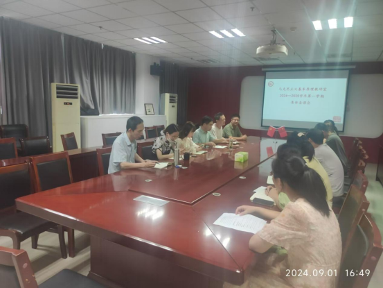 9月1日下午,为迎接新学期到来,马克思主义基本原理教研室在文综楼1130会议室召开了2024—2025学年第一学期开学前集体备课会,针对新学期课堂教学工作,进行布置和讨论。